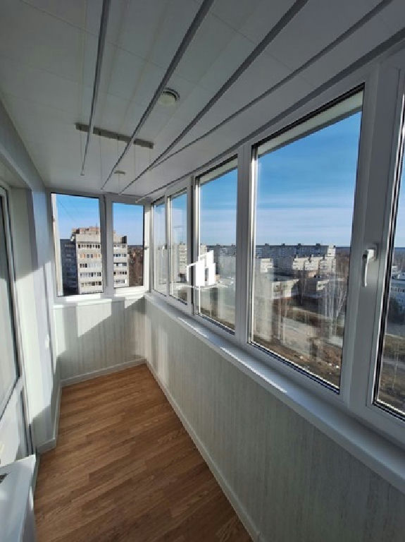 Балкон 4 метра (утеплен техноплекс 50мм) пол ламинат, стены пвх панели, проведено освещение и розетка.